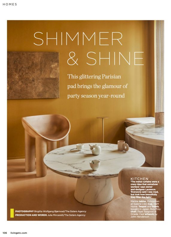 A malha metálica sublimada por Laurence Simoncini na imprensa de decoração.